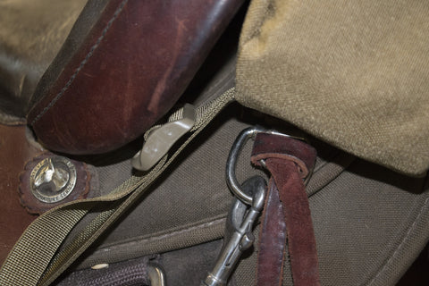 This cantle bag fits securely behind the saddle's cantle with 34" x 1" mil spec webbing.